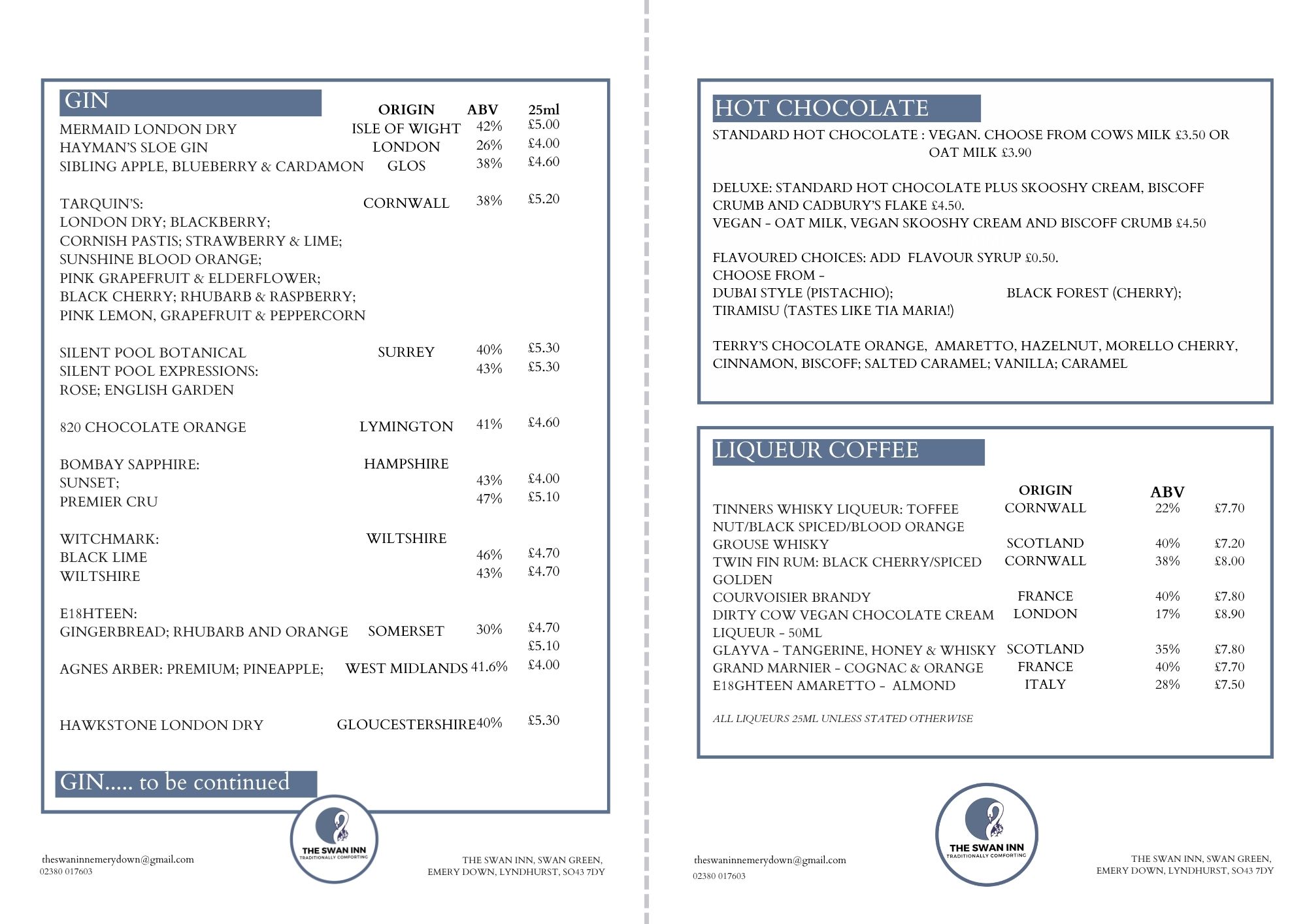 Drinks lists